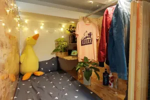 - Có tủ treo quần áo, kệ sách, tủ, bàn học ngay bên trong giường.