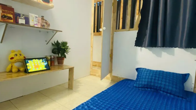 - Full nội thất: Nệm, dra, gối, rèm, ổ điện, đèn, kệ trang trí, bàn làm việc.
